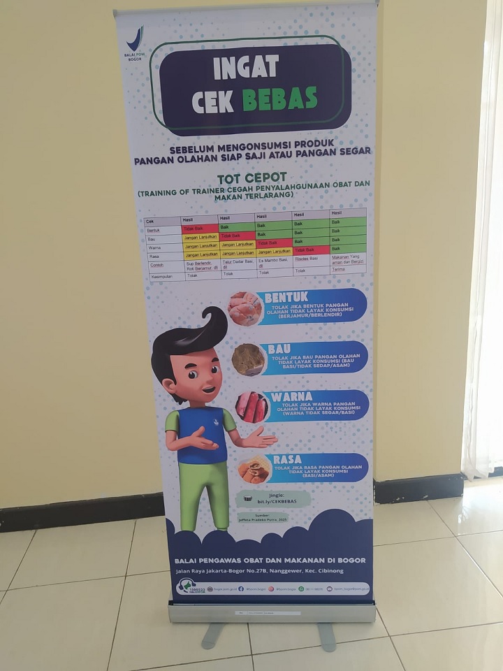 Terakhir ada penjelasan mengenai Cek Bebas dan Cek Klik, dimana Cek KLIK adalah mengecek Kemasan, Label, Izin Edar, dan Kedaluwarsa. Sementara penerapan Cek BEBAS yaitu mengecek Bentuk, Bau, Warna, dan Rasa.