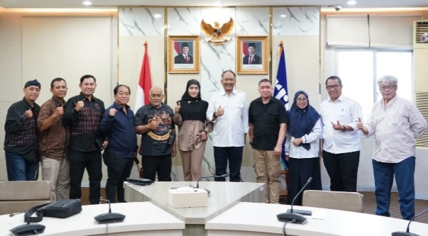 I Hendrasmo menerima kunjungan audiensi Ketum Forwan, Sutrisno Buyil, dan Ketua Panitia Penyelenggara, Nana Mardiana, di kantornya Jalan Medan Merdeka Barat Jakarta Pusat pada Selasa, 8 April 2025.