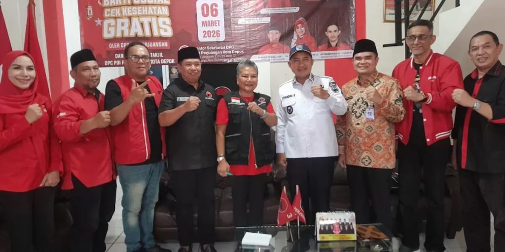 Depok, Telescopemagz | Ratusan warga memadati halaman Kantor DPC PDI Perjuangan Kota Depok di Ruko Anggrek Blok C1GDC Tirtajaya Depok, pada Jumat (06/03/2026). Mereka datang untuk mengikuti bakti sosial berupa pemeriksaan kesehatan dan pengobatan gratis yang digelar partai tersebut.